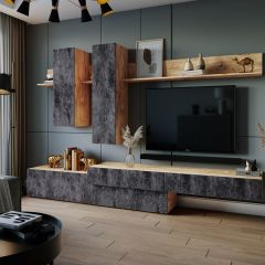 Стильная гостиная «Фрида» по праву займет центральное место Вашей зоны отдыха, вмещая в себя все самое необходимое для хранения декора, вещей, просмотра ТВ и другого досуга.