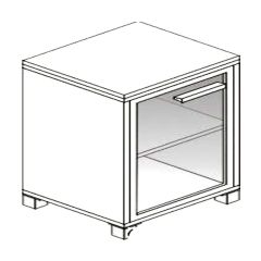 Топ из ЛДСП 44 мм., полки из ЛДСП 16 мм, остальные элементы из ЛДСП 22 мм., кромка ПВХ 2 мм, регулируемые опоры высотой 100 мм. Тонированное стекло в рамке МДФ, цвет серебро.