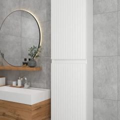 Белый шкаф с рифлёным фасадом будет отлично и стильно смотреться как в ванной, так и в туалете.